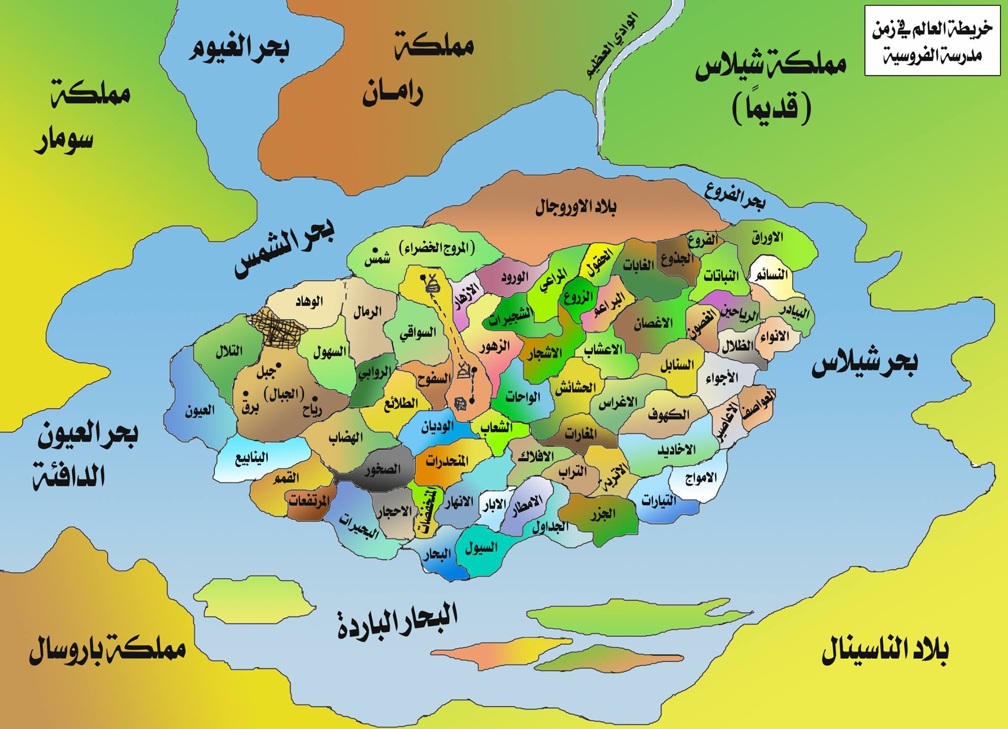 خريطة العالم في مدرسة الفروسية، كنت قج رسمتها بالرصاص، وقات إحدى طالباتي (عزيزة انور)، بالتحبير والتلوين... جزاها الله خيرا ![]()