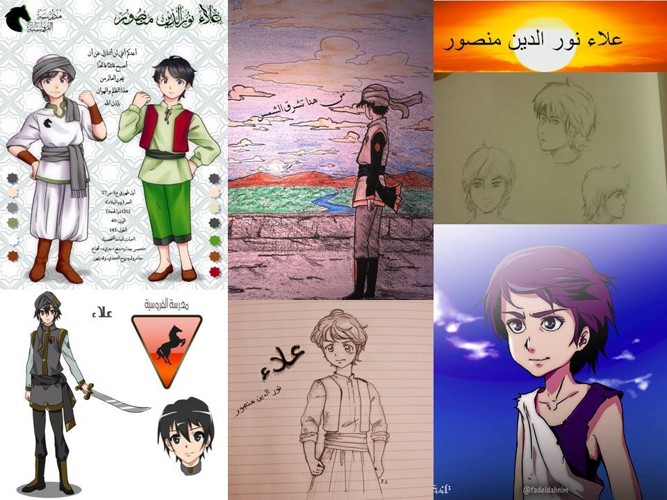 هذا اول غلاف للصفحة، من تصميم ورسم الاخ بدر العمراني- جزاه الله خيرا- بعد أن أصر على دعم المشروع برسم الشخصيات، حتى ولو لم يتم اعتماد الشخصيات لاحقا!